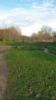 Az ingókövek után nem különösebben szép, birkalegelős, irtásos terepen futottunk át, majd egyszer sikeresen félre is értelmeztem egy jelzést, elmentünk egy jelöletlen földúton, aztán ugyanott vissza, és a félreértelmezett jelzést helyesen értelmezve haladtunk tovább a piros kereszten a Meleg-hegy felé. A csúcsra nem mentünk fel, van ugyan egy piros háromszög jelzés, ami majdnem felvezet, de a hegycsúcs katonai terület, ténylegesen a tetejére úgysem lehet odamenni, akkor meg az, hogy mennyire vagyunk alatta, szinte mindegy. De előtte még átvezetett az utunk egy gyönyörű erdőn, a Bodza-völgyön, ahol még patak is folyt, és itt áttértünk a piros sáv jelzésre.